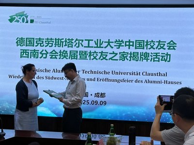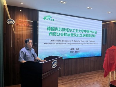 Am 9. September 2025 fand an der Sichuan-Universität in Chengdu die feierliche Eröffnung des „Alumni-Hauses Südwestchina“ sowie die Neuwahl der Regionalleitung des Vereins Chinesischer Alumni der Technischen Universität Clausthal (VCAC) statt. Die Veranstaltung fiel in das Jubiläumsjahr zum 250-jährigen Bestehen der TU Clausthal und markierte einen wichtigen Moment des Austauschs zwischen deutschen und chinesischen Alumni.